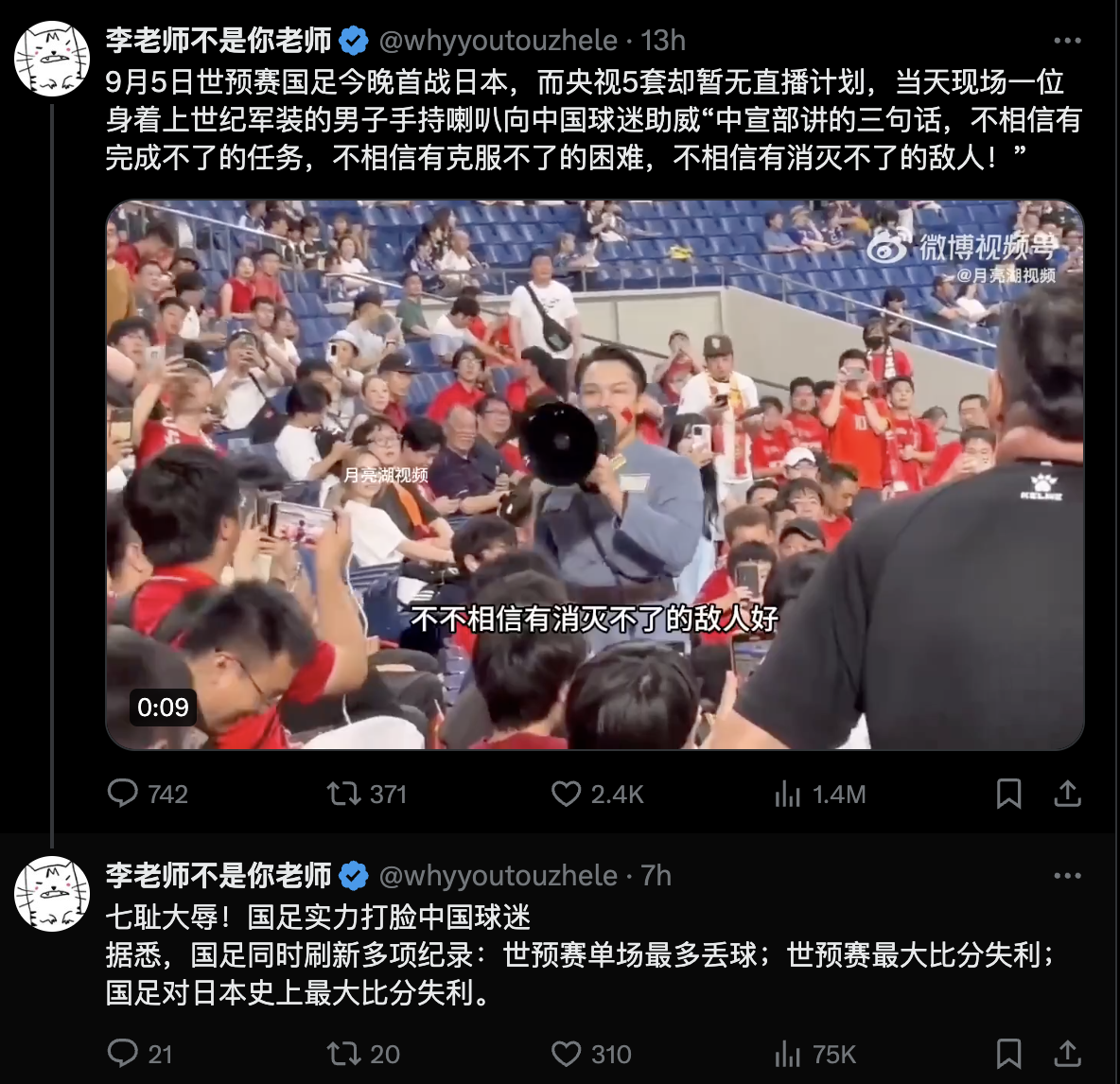如果这回国足踢不过日本,我们还可以去网上骂他们啊,我们还可以去靖国神社撒尿侮辱他们啊,我们还可以打电话骚扰日本的餐馆啊,我们还可以在网上造谣日本海鲜都是变异生物啊……办法总是有的嘛!任务也好,敌人也好,只要敢于斗争,还能打不赢吗?