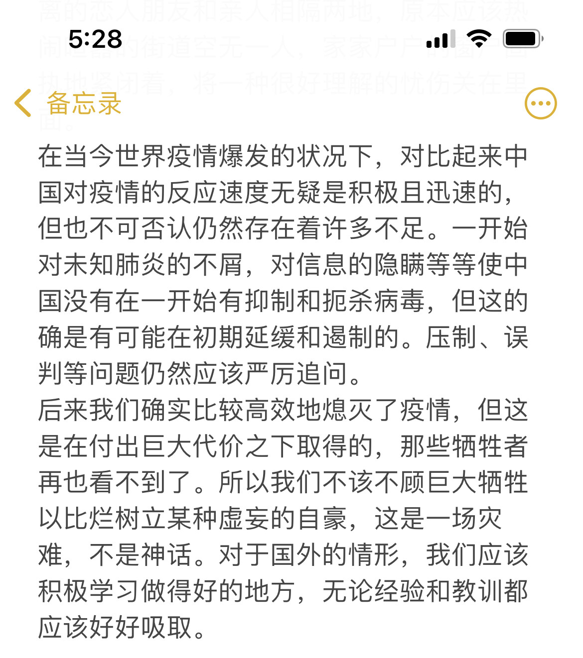 20年初提交给学校的疫情“封后感”,两年后的今天再看总觉得是那种代表了50w的谋逆之言,是不可能敢这样交给学校的,这两年的水确实有点温了。