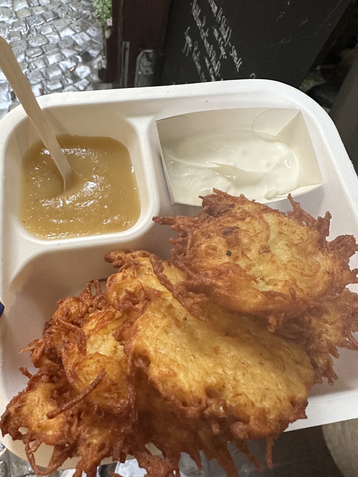 p3买的科隆小吃,当时正好在下雨,也没排队!甚至和店主小姐姐坐在对面餐厅后门台阶上,她抽烟我吃饼,听着雨声聊了蛮久。她说是自己喜欢food所以辍学开了这家店,甚至为它结束了十年的恋爱(我:下一个找家庭煮夫),很勇敢啊,我如果也有qnmd老娘不学了的勇气就好了()