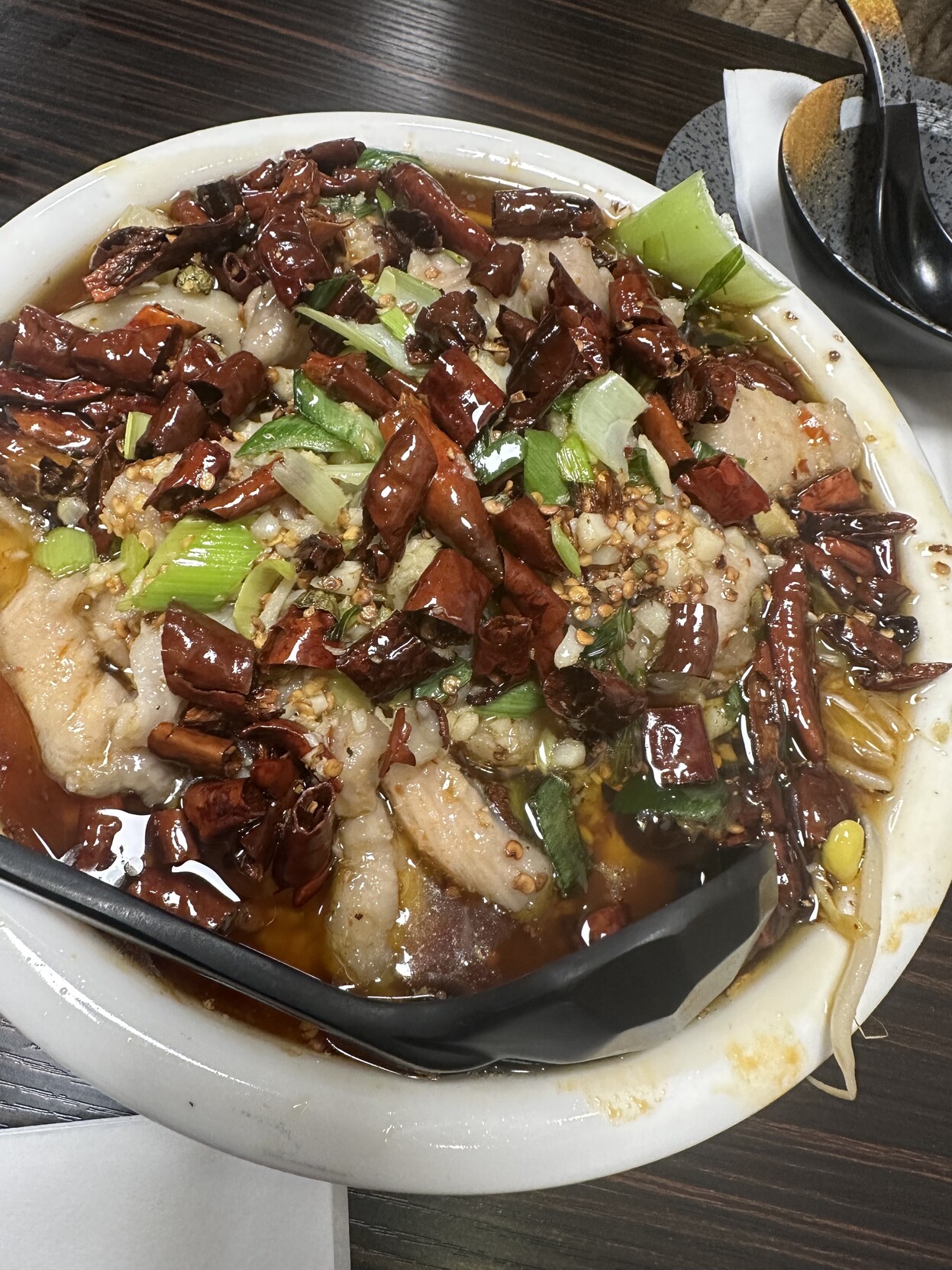 海牙真的是我的精神老家😭😭今天一路都在想吃辣辣的结果看好的店没开门,就去吃了粤菜,我们火速点了一份沙茶牛河、凤爪排骨饭和萝卜糕,每个都好好吃啊!不辣但完全解决了我的饥肠辘辘的胃,而且又是直接吃撑然后打包带回家又是一顿的量。排骨饭里有粤菜经典芋头,很香很软,比国内很多煲仔饭里的芋头都好吃,一口下去我感觉到天堂了()河粉也很赞,沙茶酱其实吃起来容易腻的,但它还好,并且里面加了甜辣椒和菠萝,口感是咸中带点清爽。吃的时候回想起了潮汕牛肉火锅,我用的蘸料就是沙茶酱+榨菜,很绝配!之后还要去海牙吃大盘鸡锅包肉卤肉饭(心心念念)。