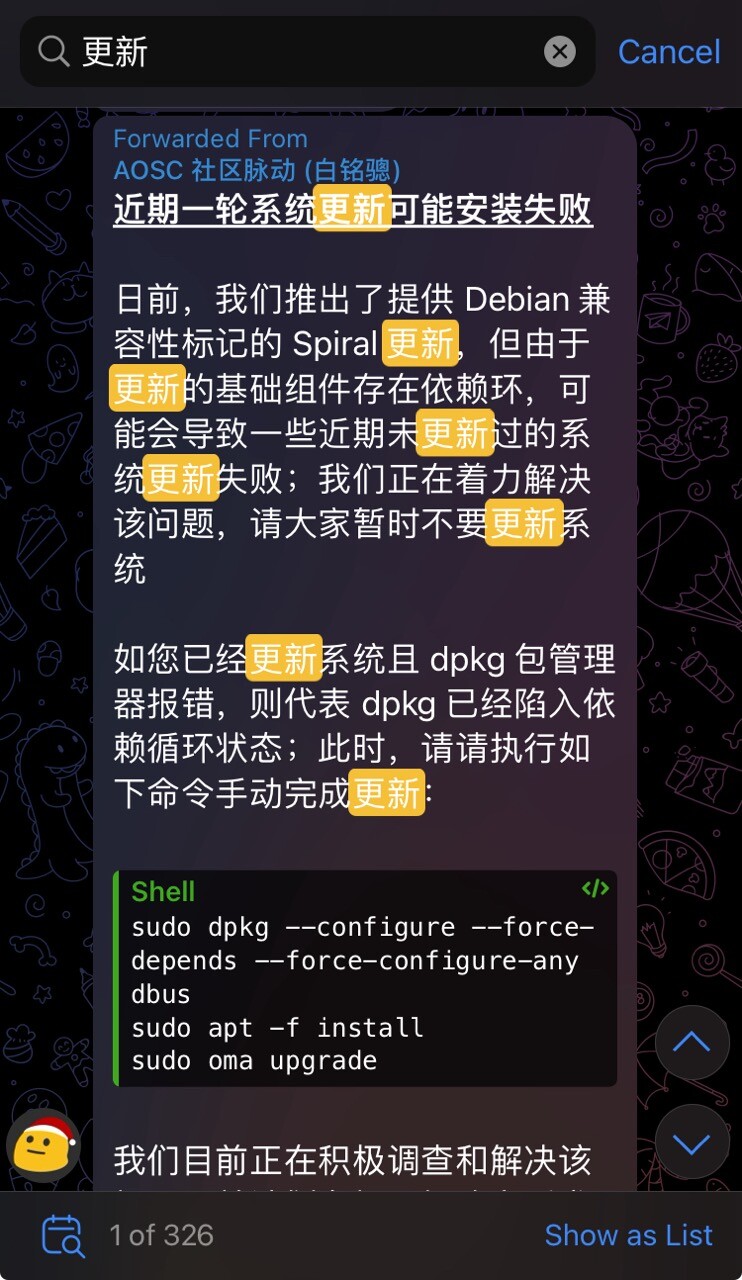他们家做了一个叫 spiral 的东西,而之所以需要这东西,是因为他们把 Debian 里面本来零散的包给打成整的包了,举个例子,就那MySQL,知道吧?Debian 可能分成好几个包,但是 Aosc 直接给你打成一个包了,就叫 mysql。