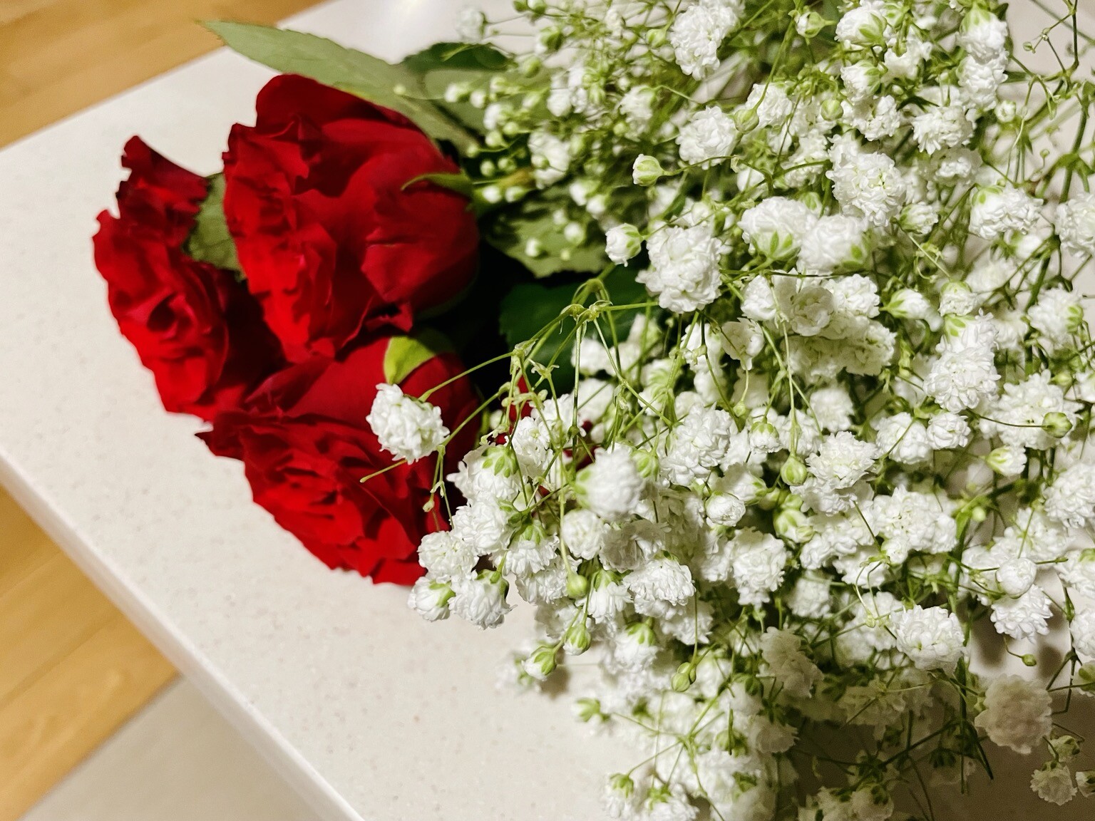 As a totally #introvert ,having a long social day,I thought I'm fine,but on the way home,I bought the most vulgar #flowers ——red rose and babysbreath ——without thinking,now I start to think it like a metaphor for my inner world today.