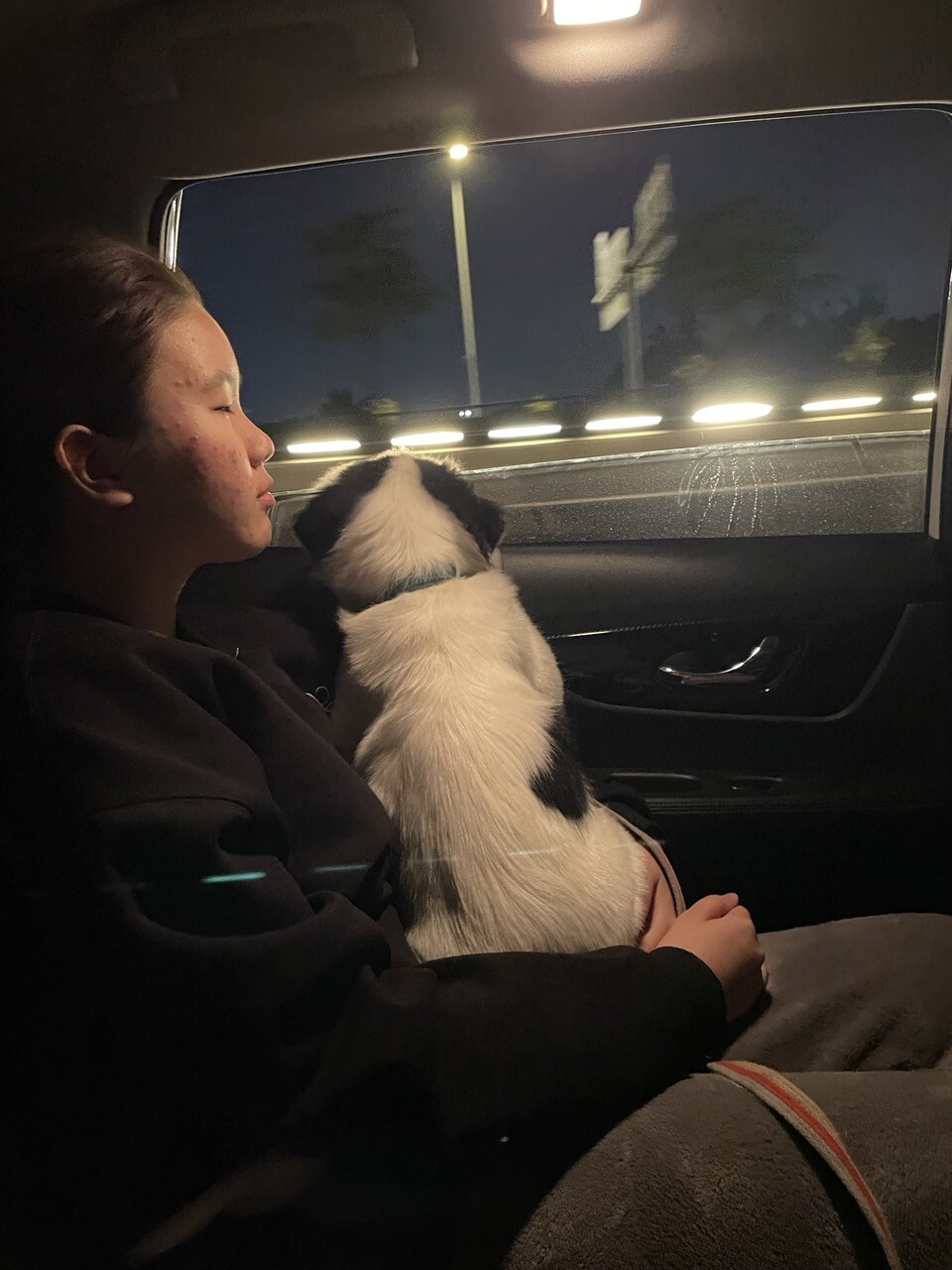 她带着牵引绳往前飙,我一边追,一边喊她的名字,她不回头,我追到前面十字路口,发现马路上,人行道上,任何波比和牵引绳的痕迹都没有。波比就像人间蒸发了一样。后面除了妹妹妈妈,还有外甥也一起开着电动车四处寻找。但是没到半小时,下起了大暴雨,打雷……