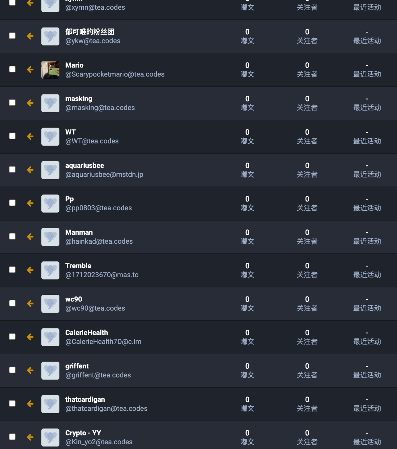 - 过高的僵尸帐户比例:仅本站所知的 279 个帐户,无头像、无嘟文、无活动的三无帐户比例便高达7成。(图一、图二、图三、图四)