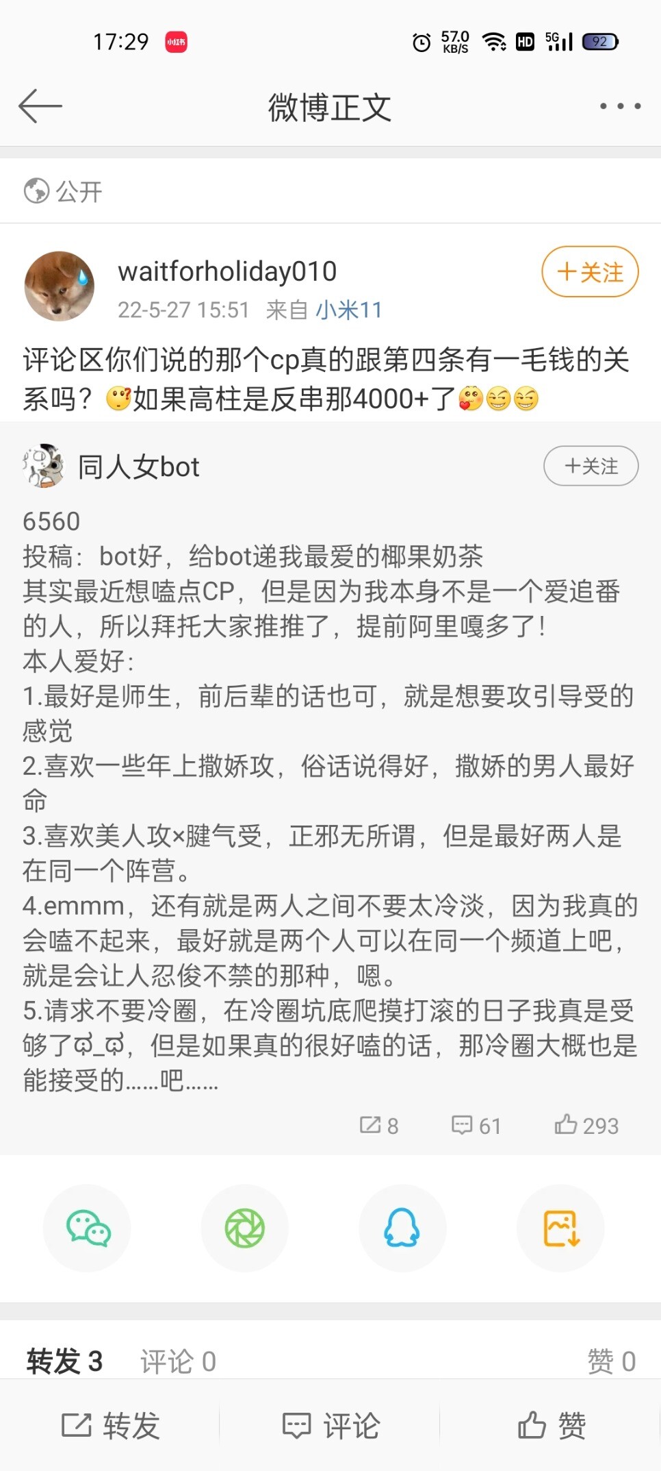 如果我没记错,最右这个xw解在被厕妹骂之后应该是火速取关了吃油条超话,当时看到过,现在去看已经没了