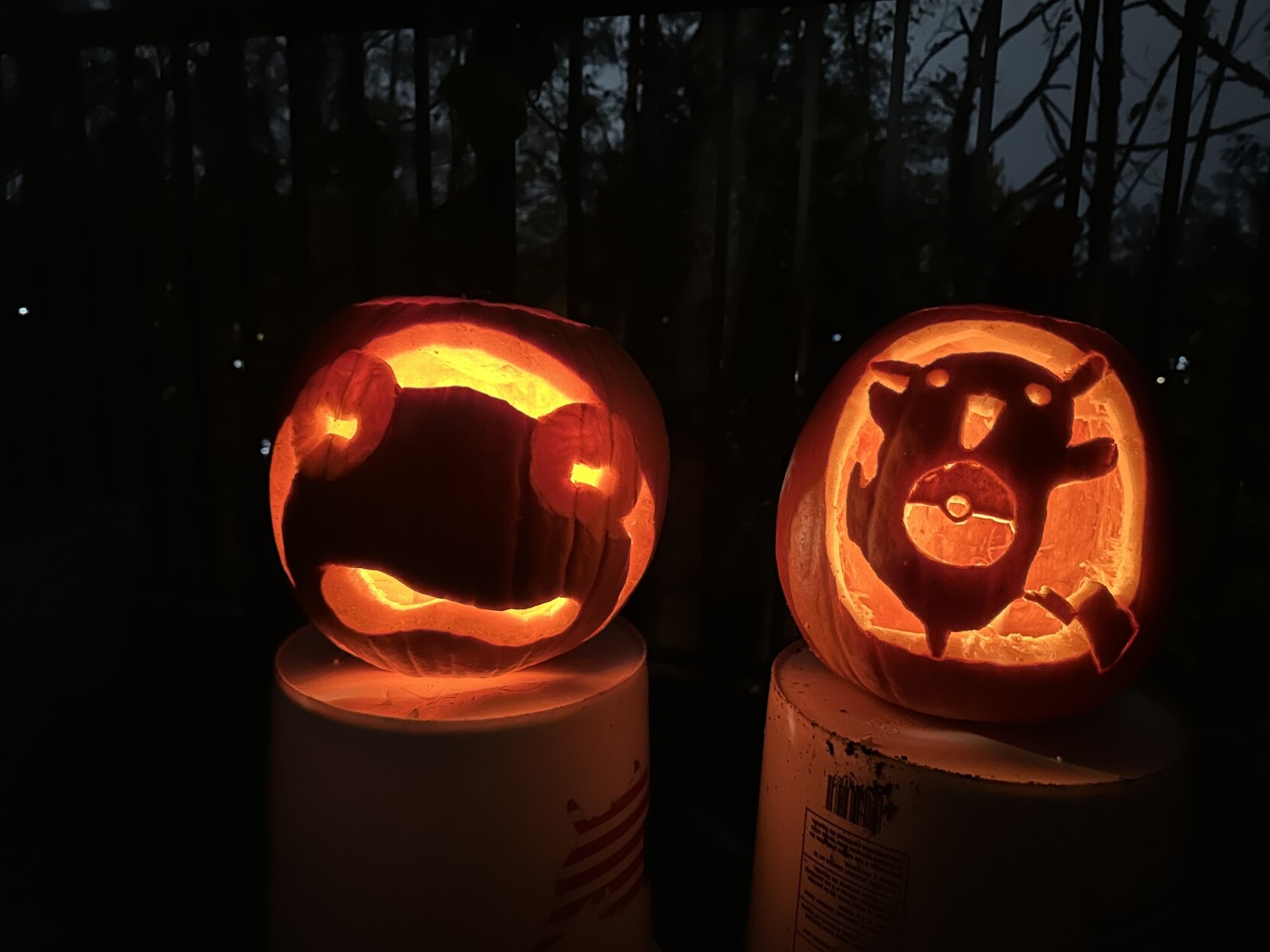 萬聖節快樂 我刻了一隻邪惡的大蛙臉 男朋友刻了皮卡丘