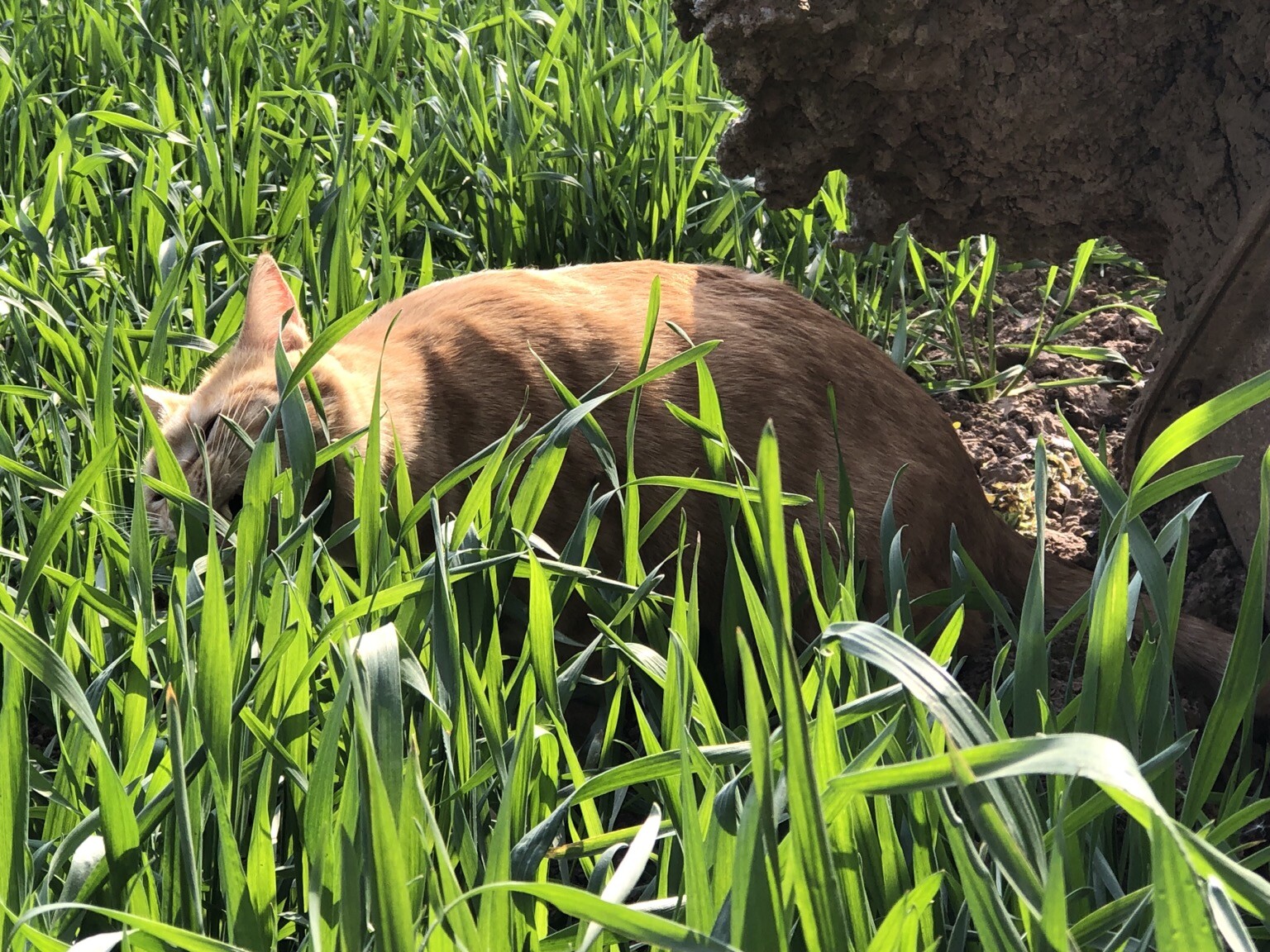 就要跑就要跑,再大声也喊不回来,一眨眼就已经在粪坑里往上爬了,然后在我的呼喊声中,一路叫着跑到层叠的木头下面藏着。这里好像是她的秘密基地,给她特别的安全感,一下午去叫几回也只有偶尔的喵喵声回应,但怎么也不肯出来。