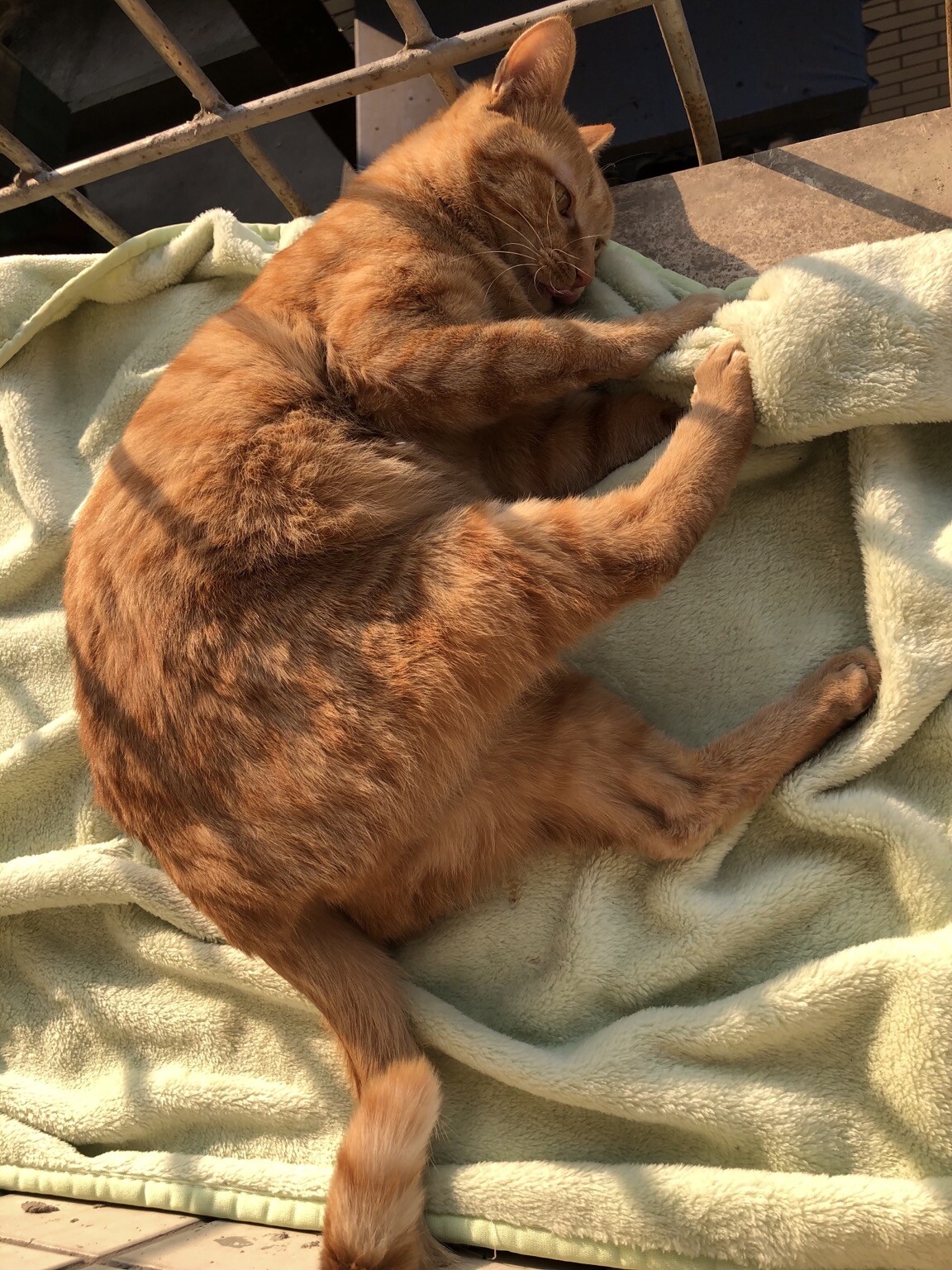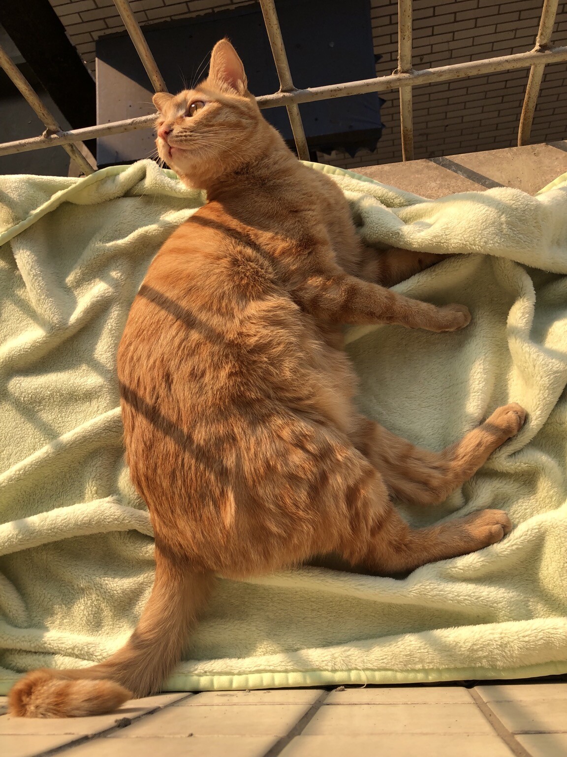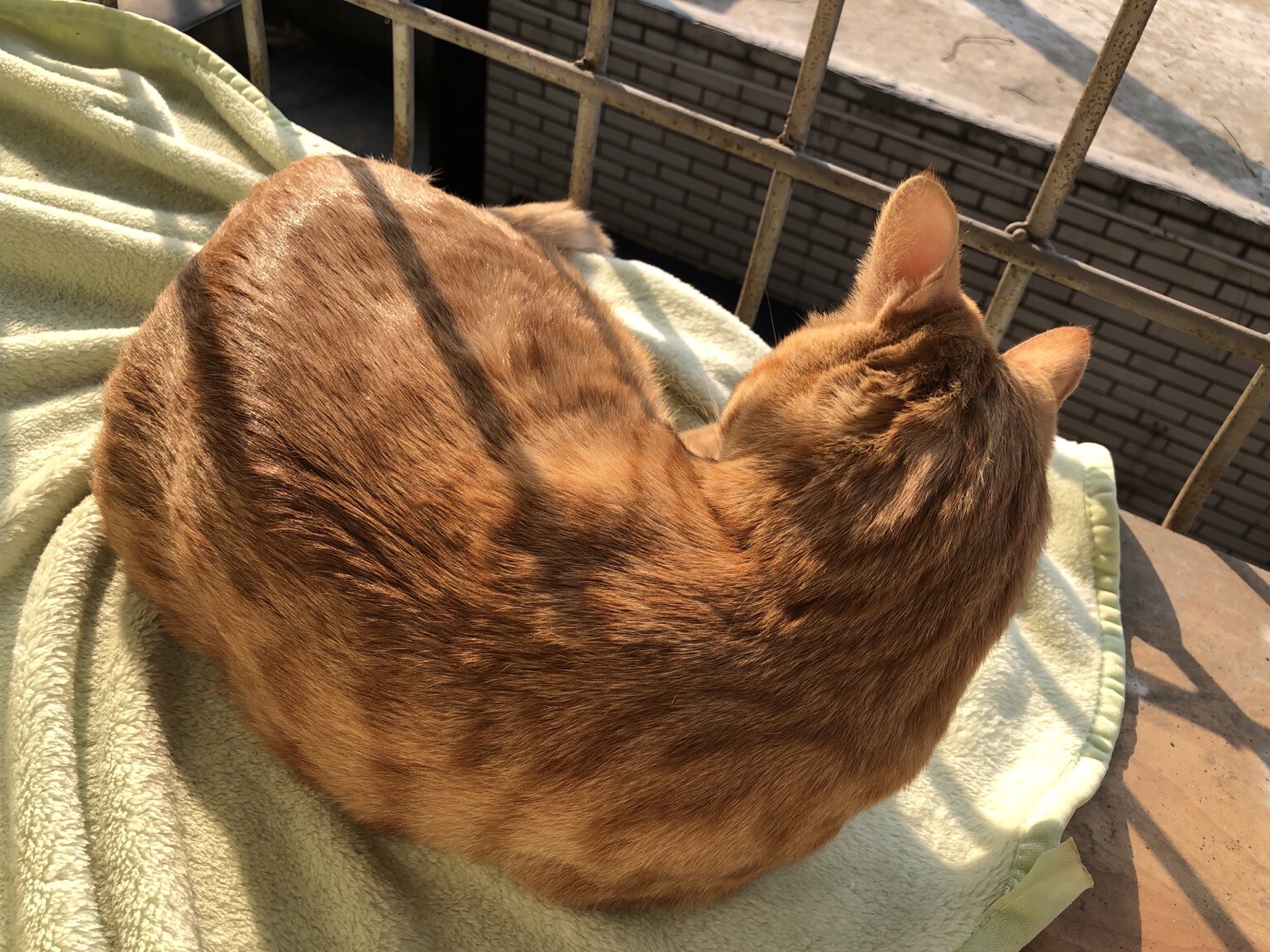 话说小木墩,是真的广受欢迎。在这一只定位到下一个舔毛点的时候,上一只就飞快占领这一目标点。蹲着是不舒服的,要扭一扭屁股,换个舒服的姿势躺着才行。黑色确实格外吸热,没待多久,他的黑色毛毛就被还开着的小太阳烤得发烫了。但这也不能阻止他继续躺着…