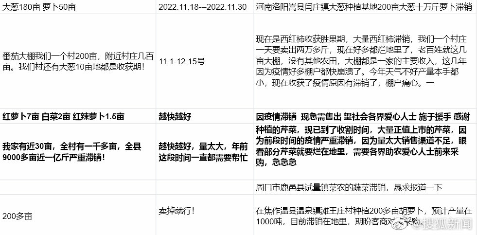 在一张由河南当地媒体发起的“助力河南农户卖菜”表单中,一些农户为了尽快出掉地里囤积的蔬菜,写明“低于本地市场价出售”,一些农户写道“如果有企业自己来拉并承担人工费用,菜免费送。”